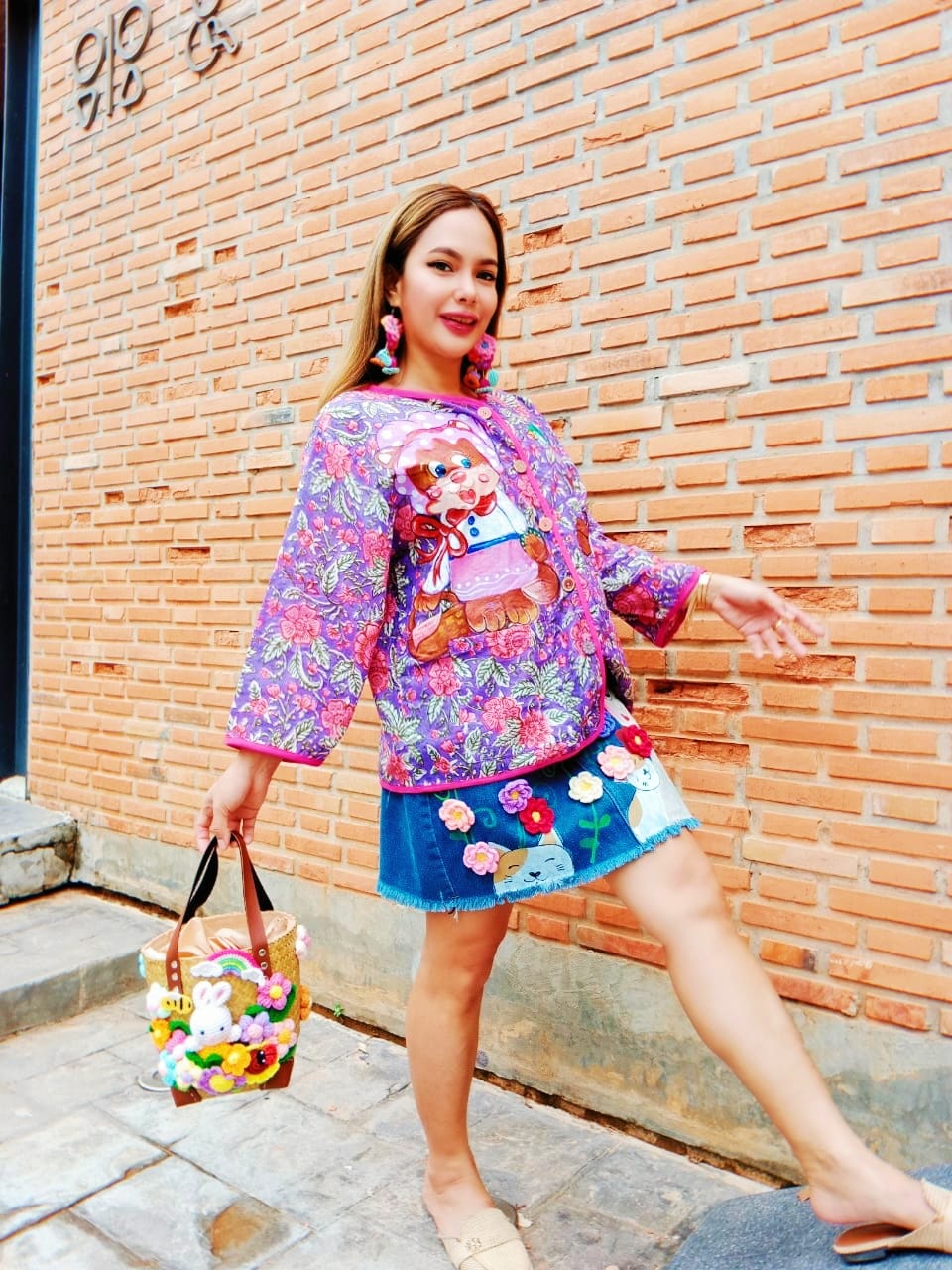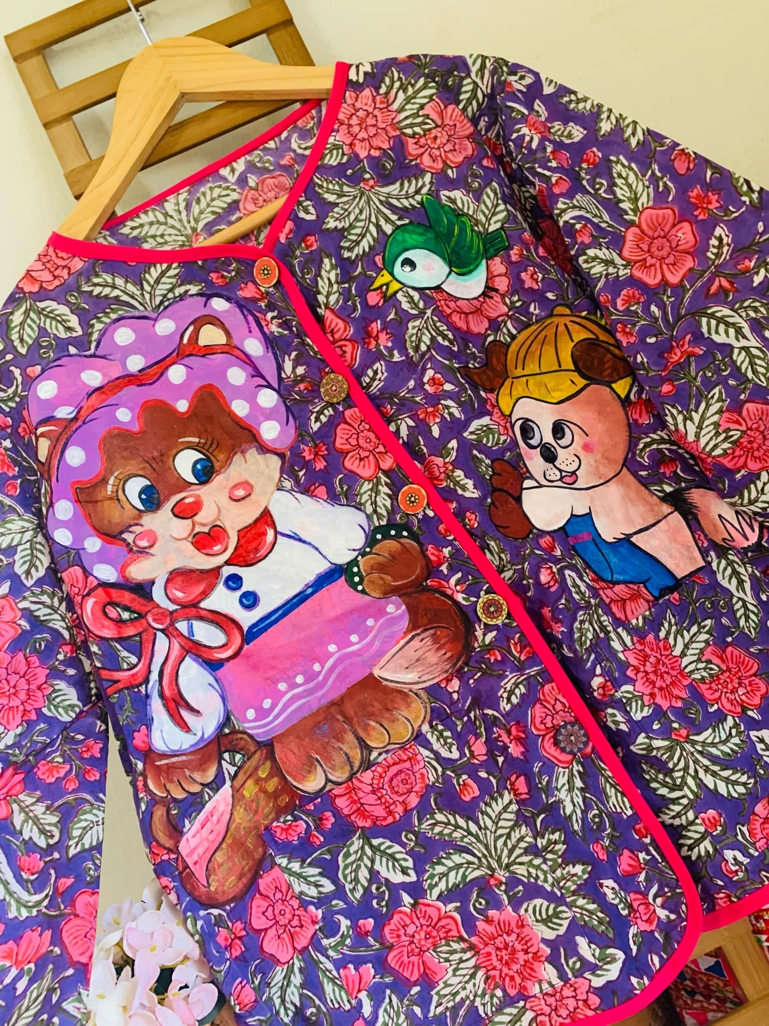 💜เสื้อ ที่นางแบบใส่ ตัวนี้ เป็นงานแขนยาว เสื้อผ้า อินเดีย บล็อกไม้คะ ใส่ง่าย ใส่สบาย ไม่ร้อน มาด้วย งานเพ้นท์มือ ลายคิ้วท์ๆ สุดน่ารัก