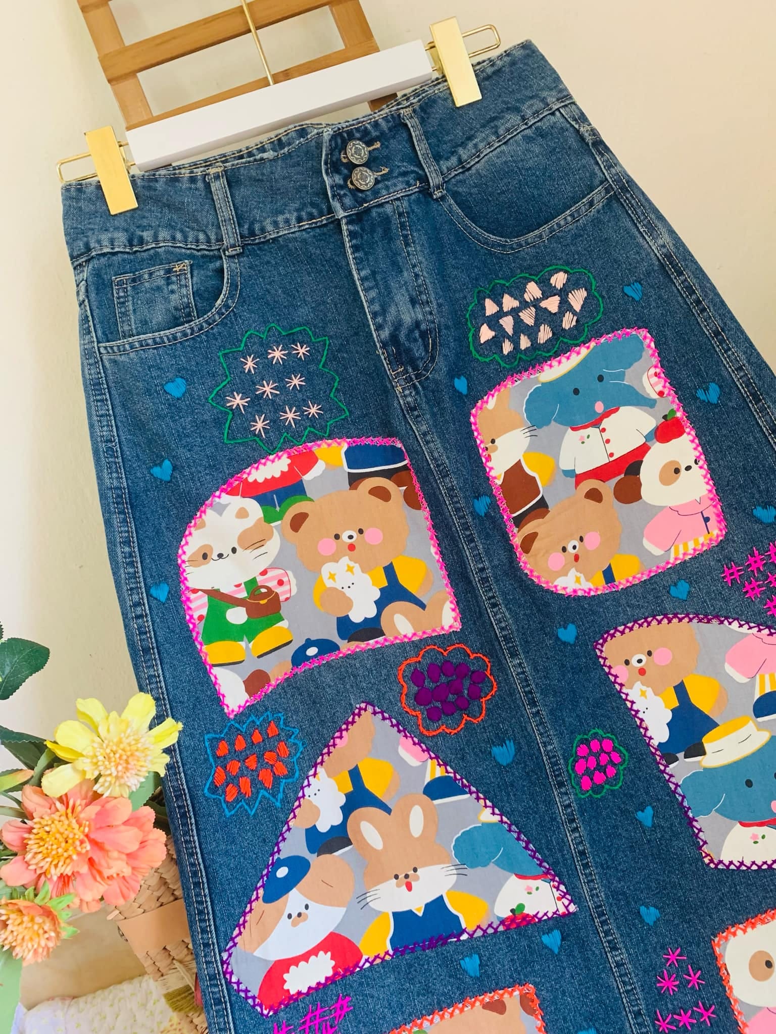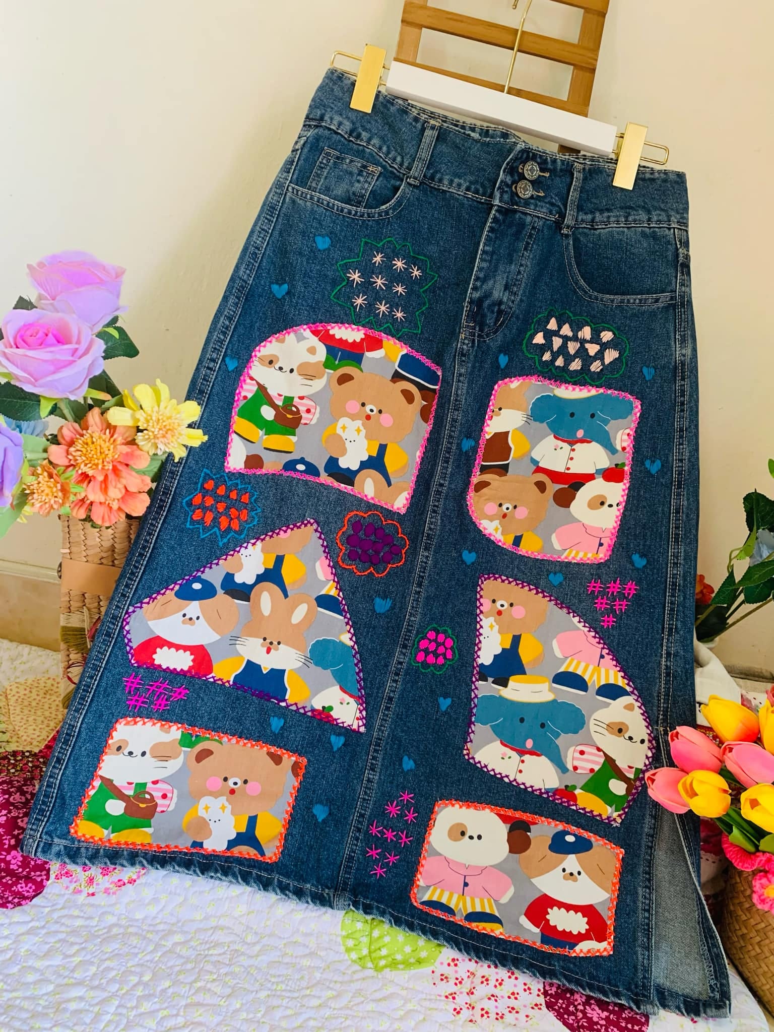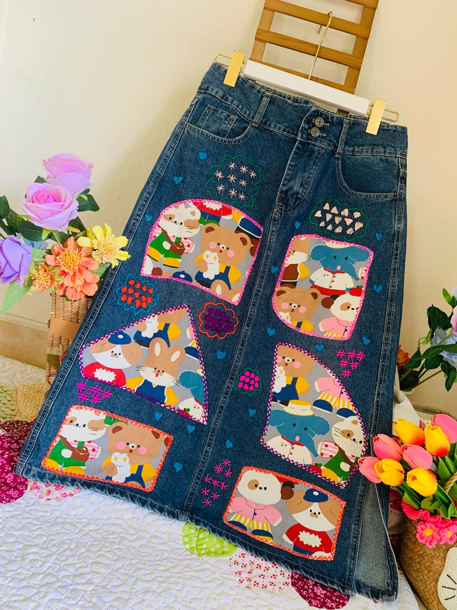 🌺มาจับแม็ทกับ กระโปรงยีนส์รีเมค แต่งงานผ้า